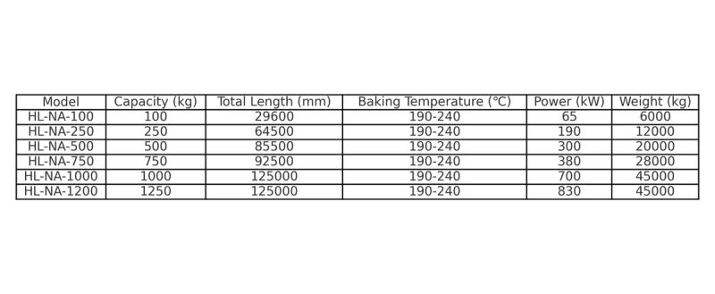 Compatible with various oven types, including electric, gas, diesel, or thermal oil ovens, catering to diverse product needs.